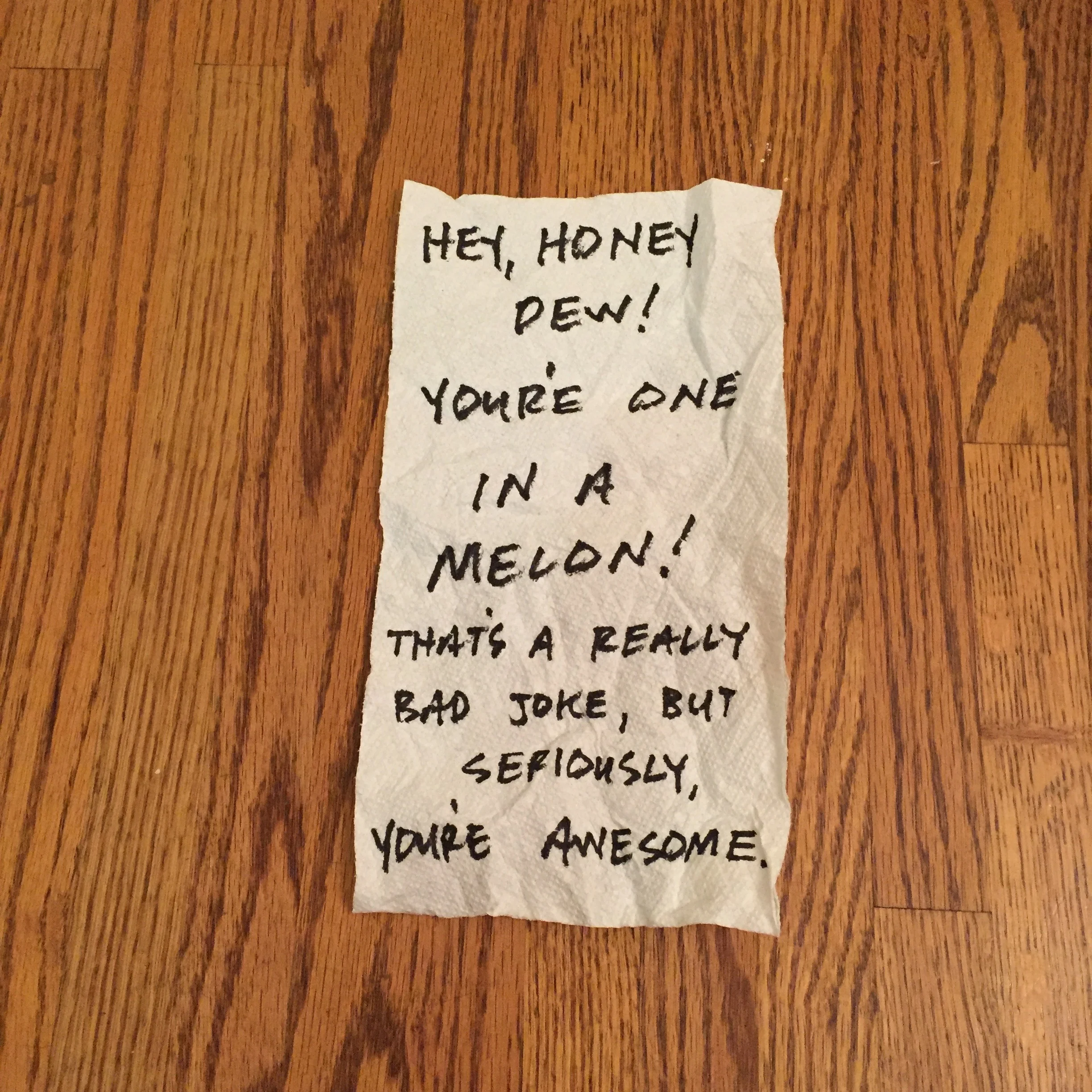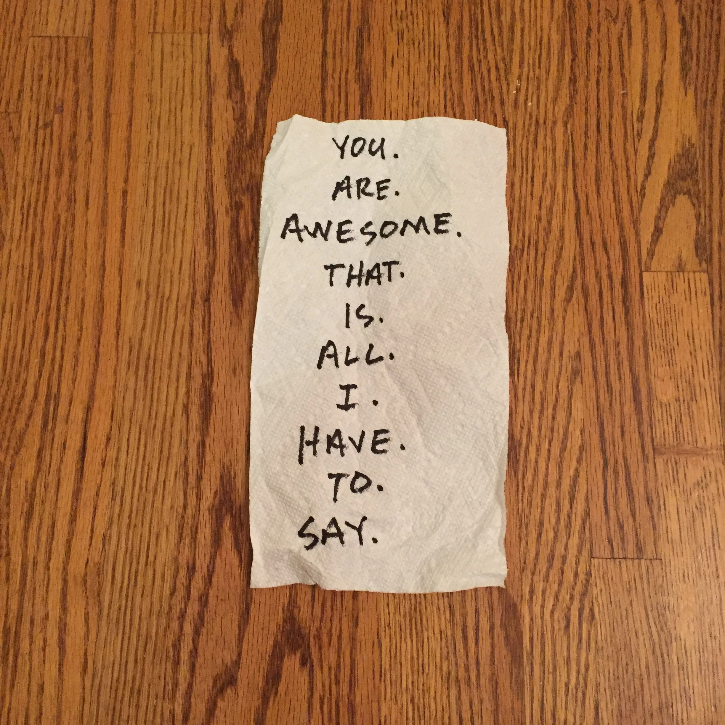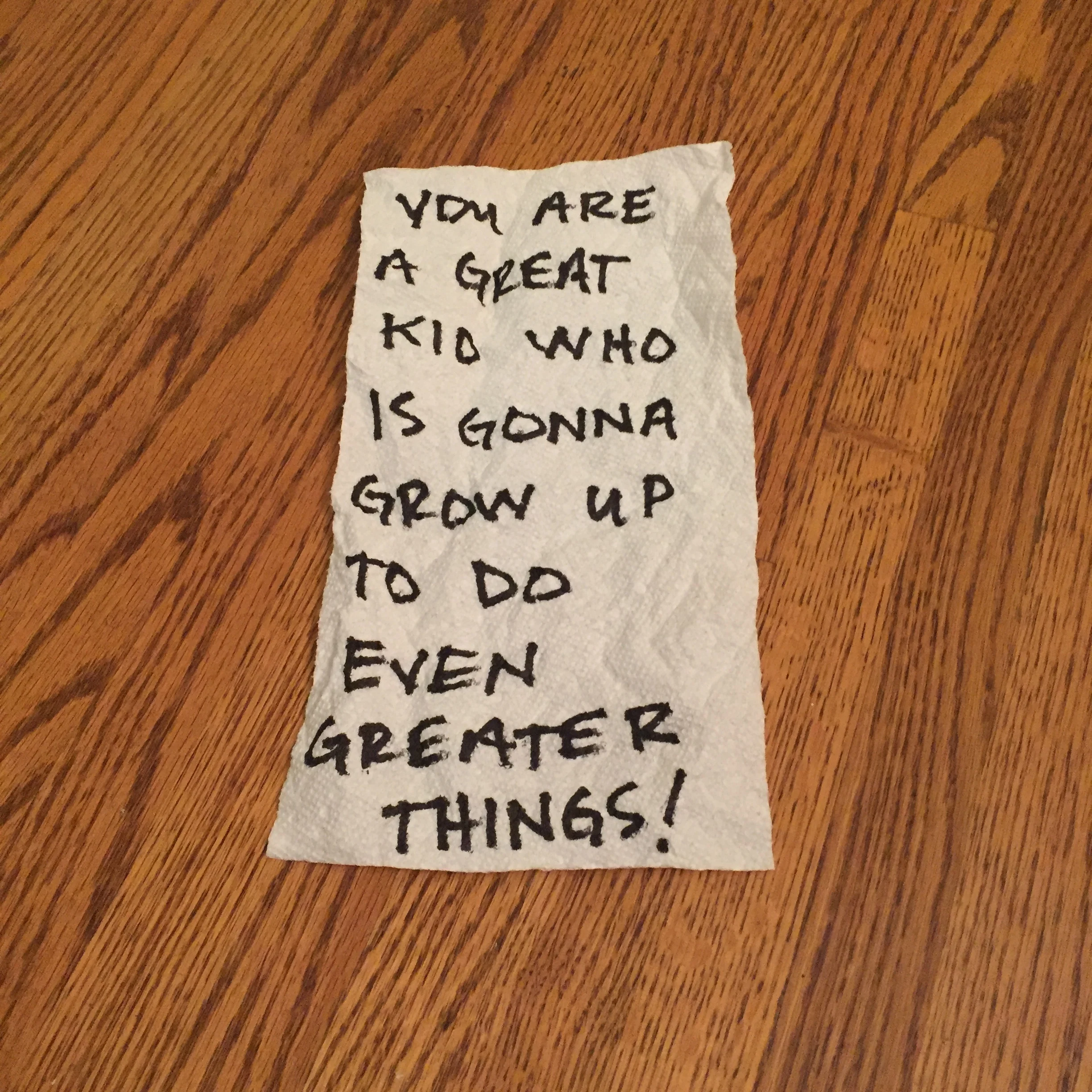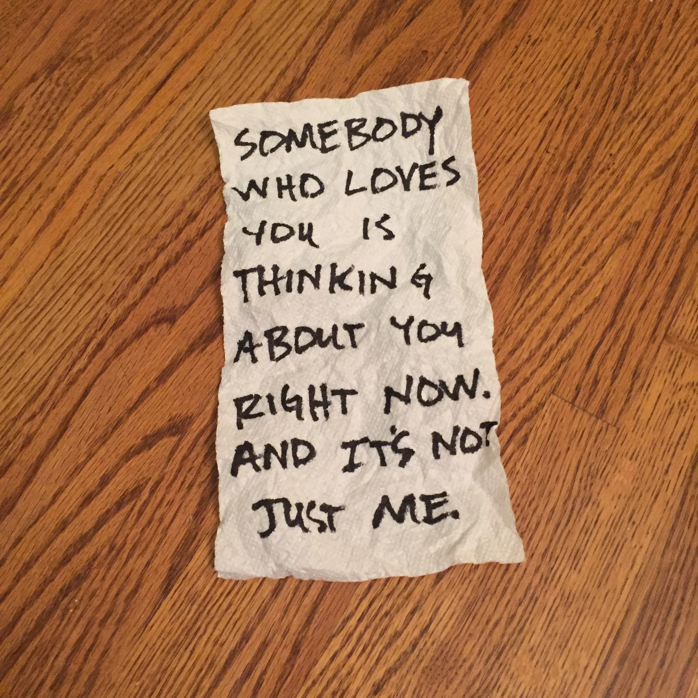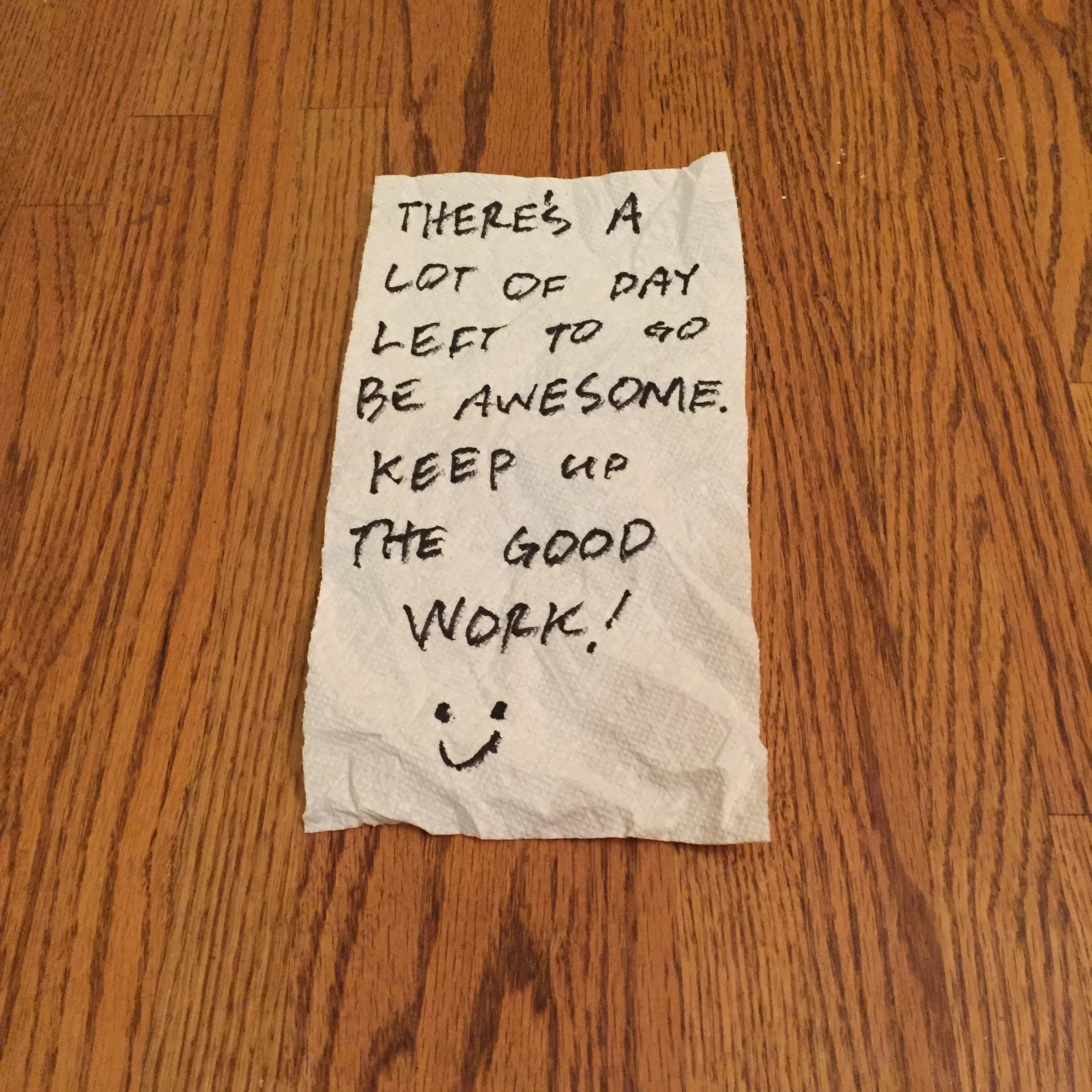 When you submit a Napkinism message, I will write the note on a napkin, post an image, share the image, and then save your note to share with a kid in need.