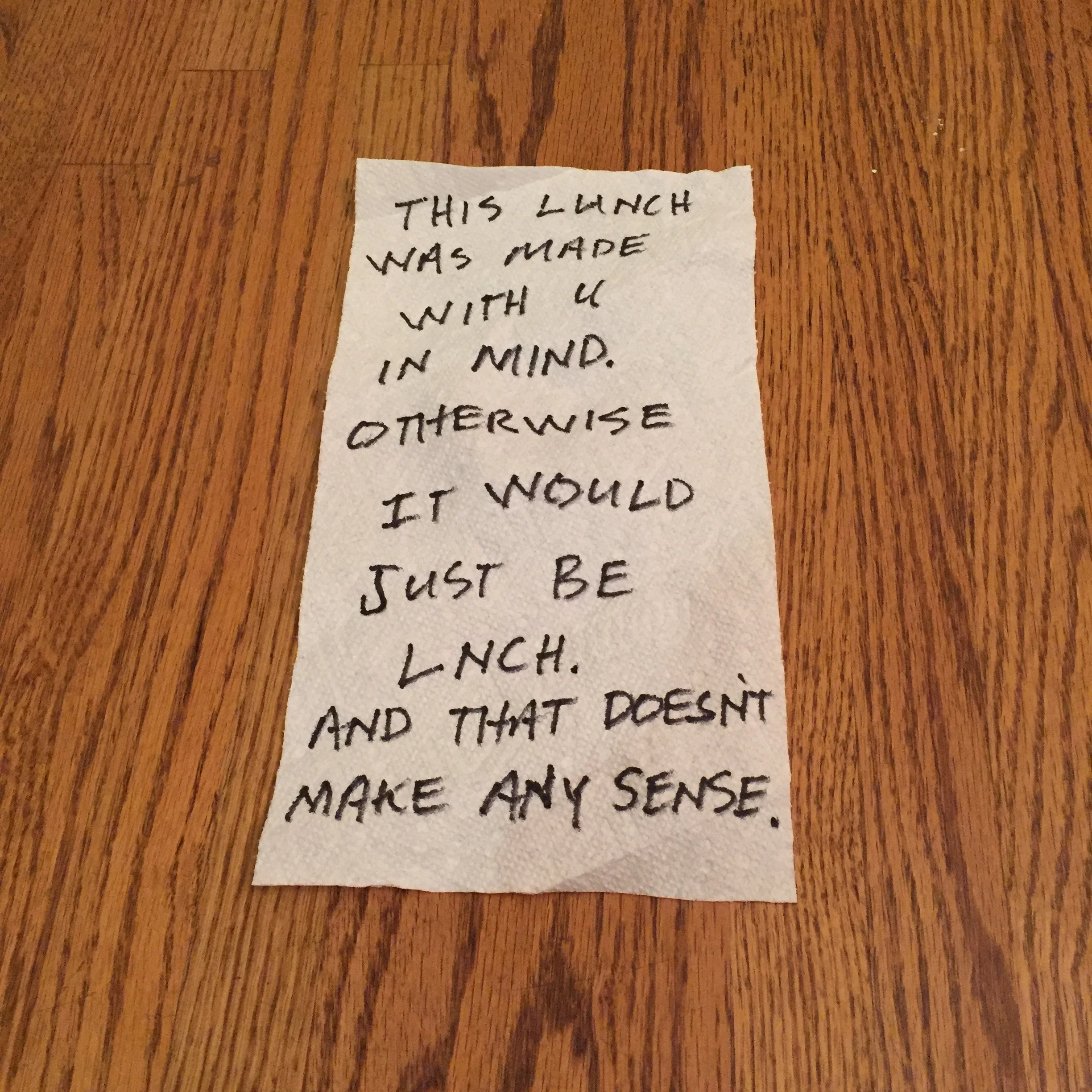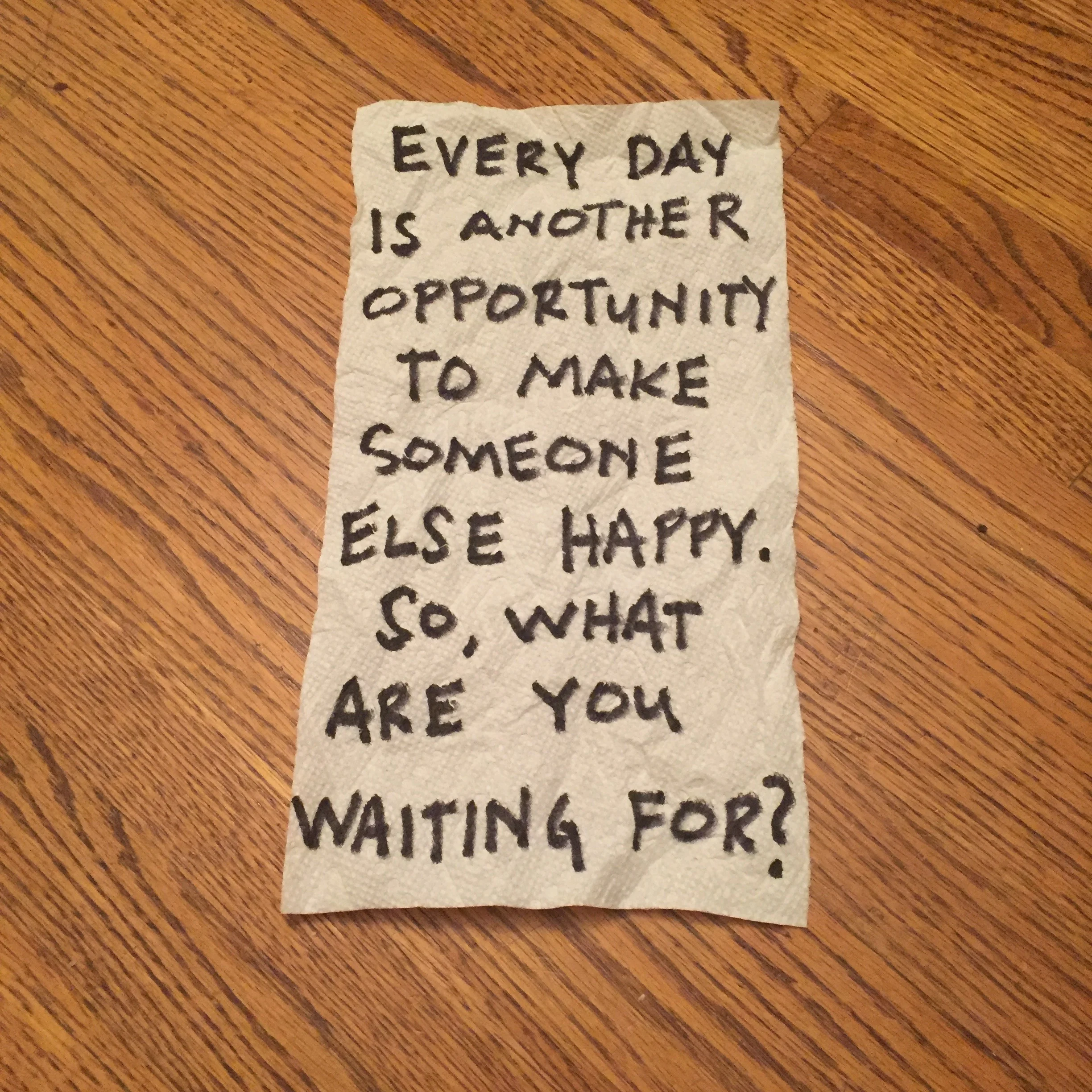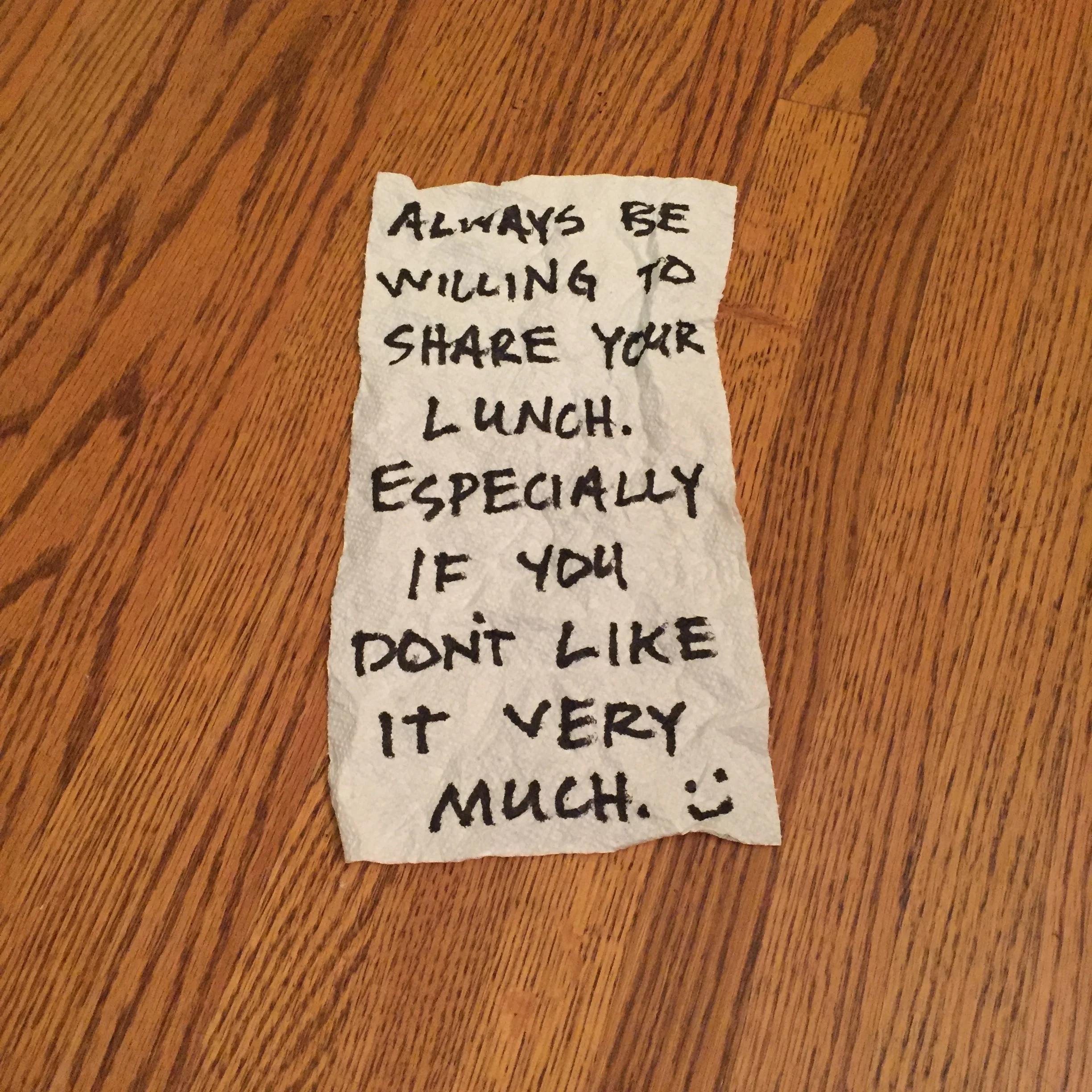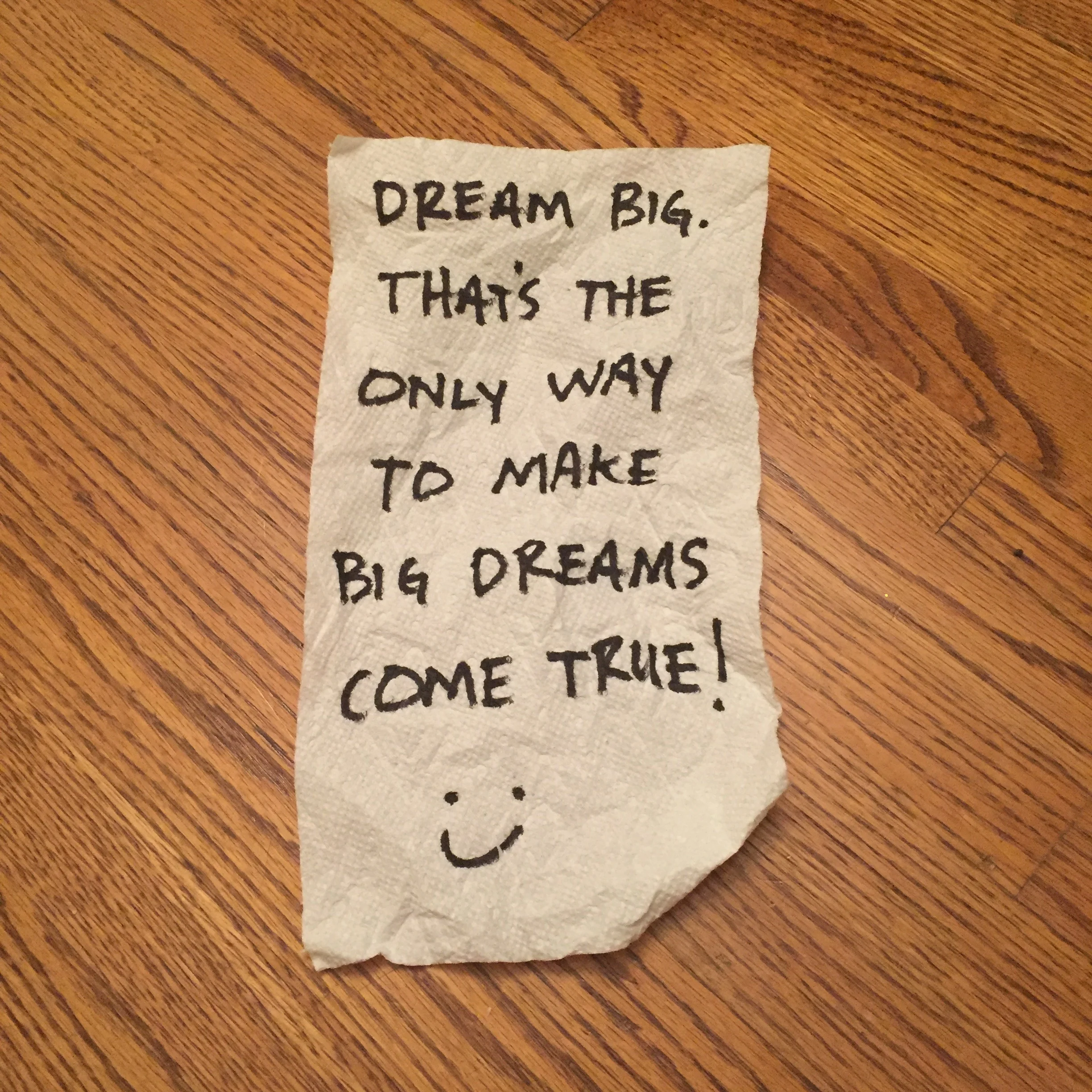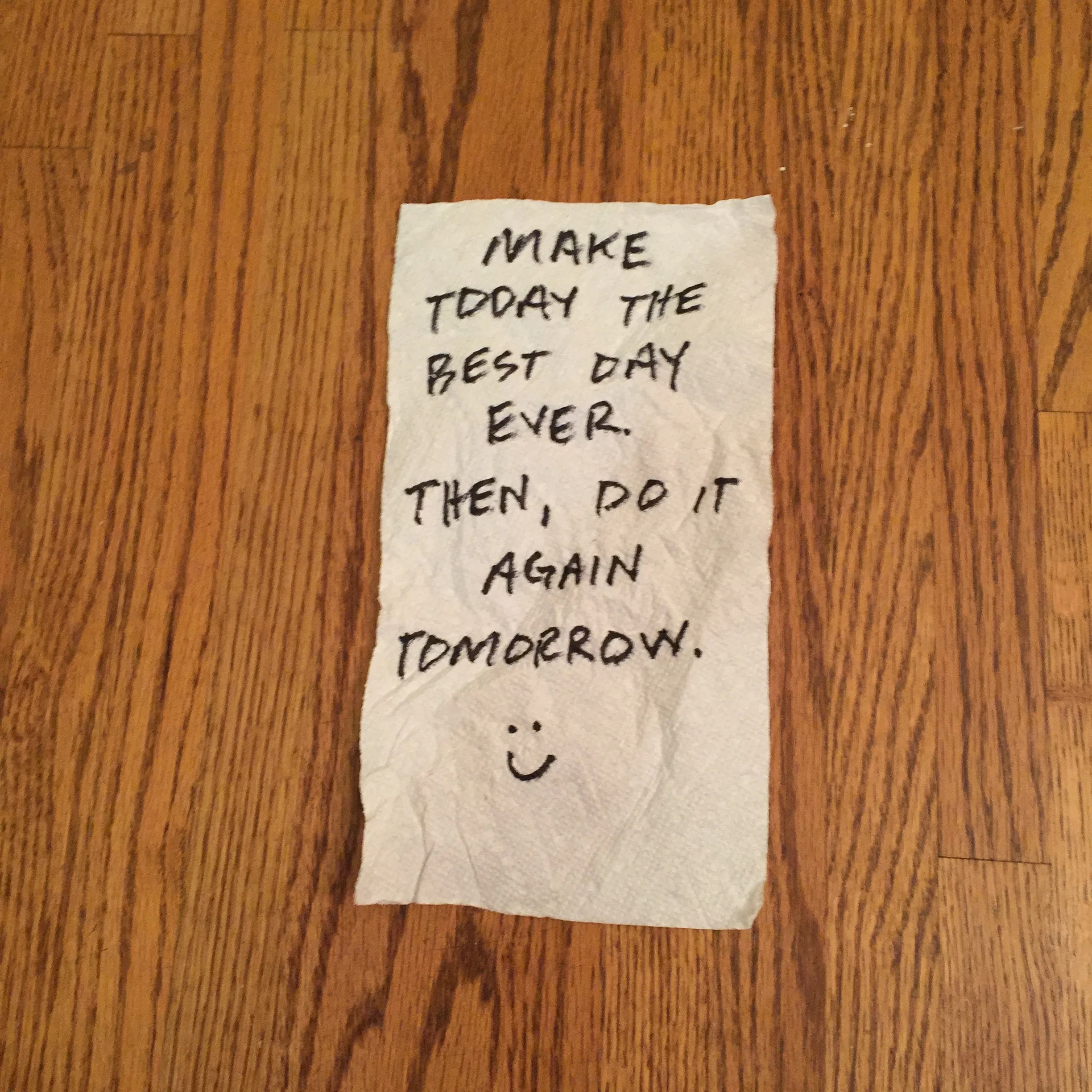 When you submit a Napkinism message, I will write the note on a napkin, post an image, share the image, and then save your note to share with a kid in need.