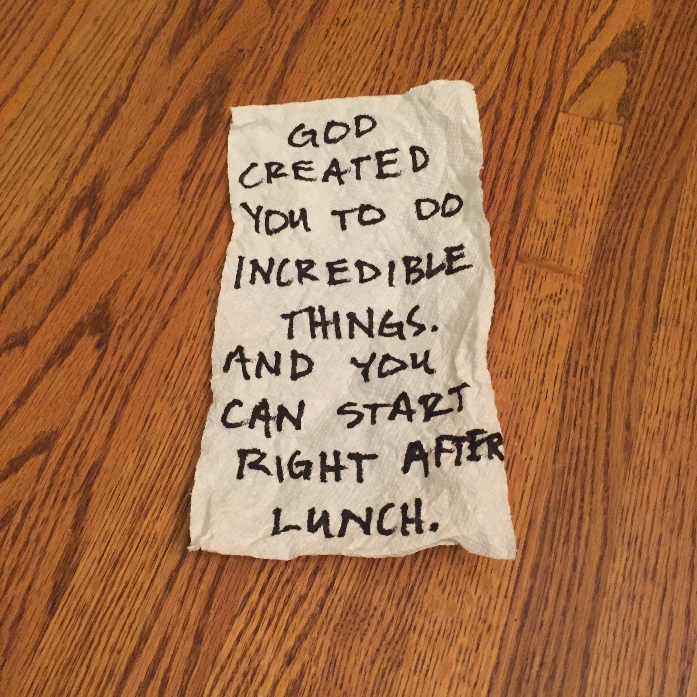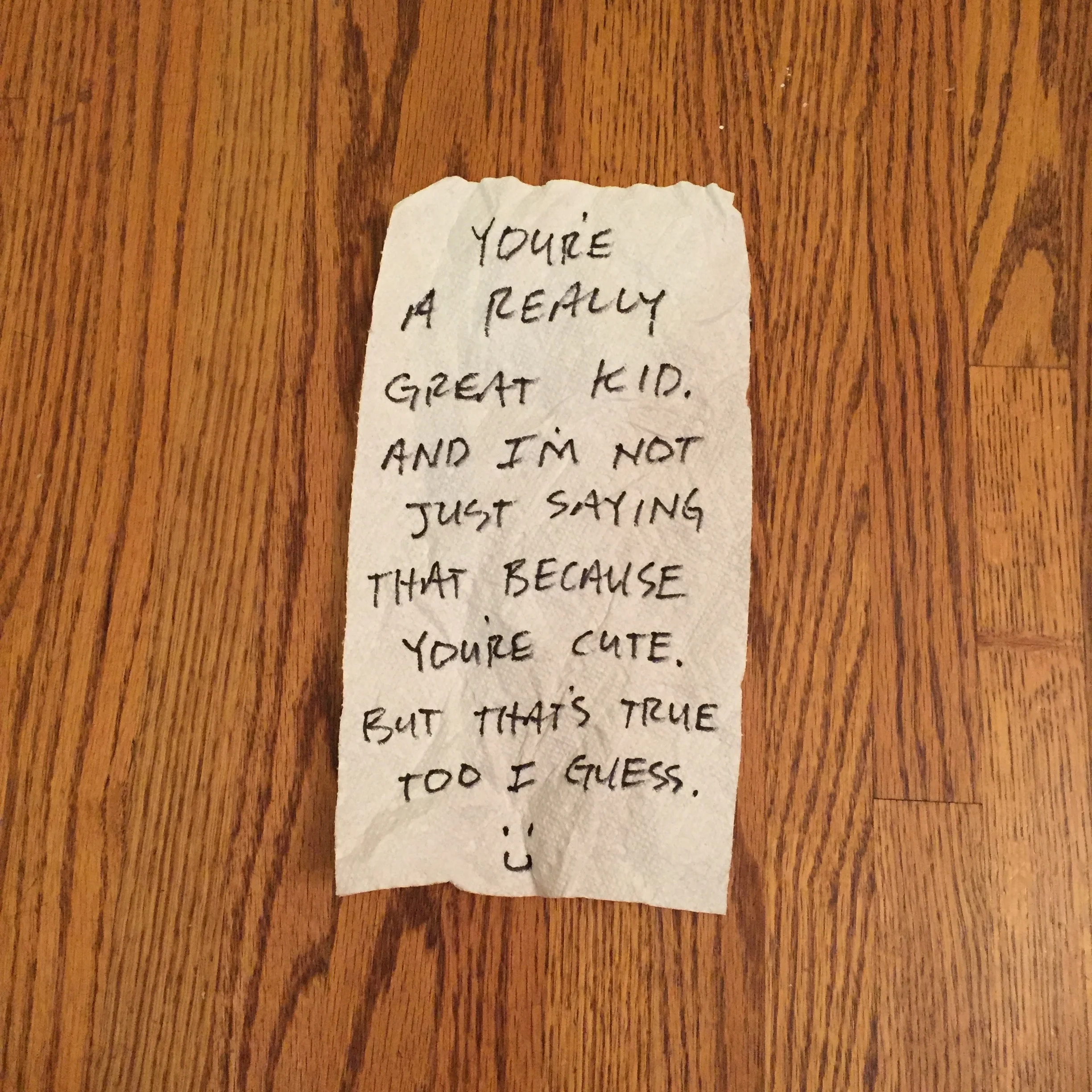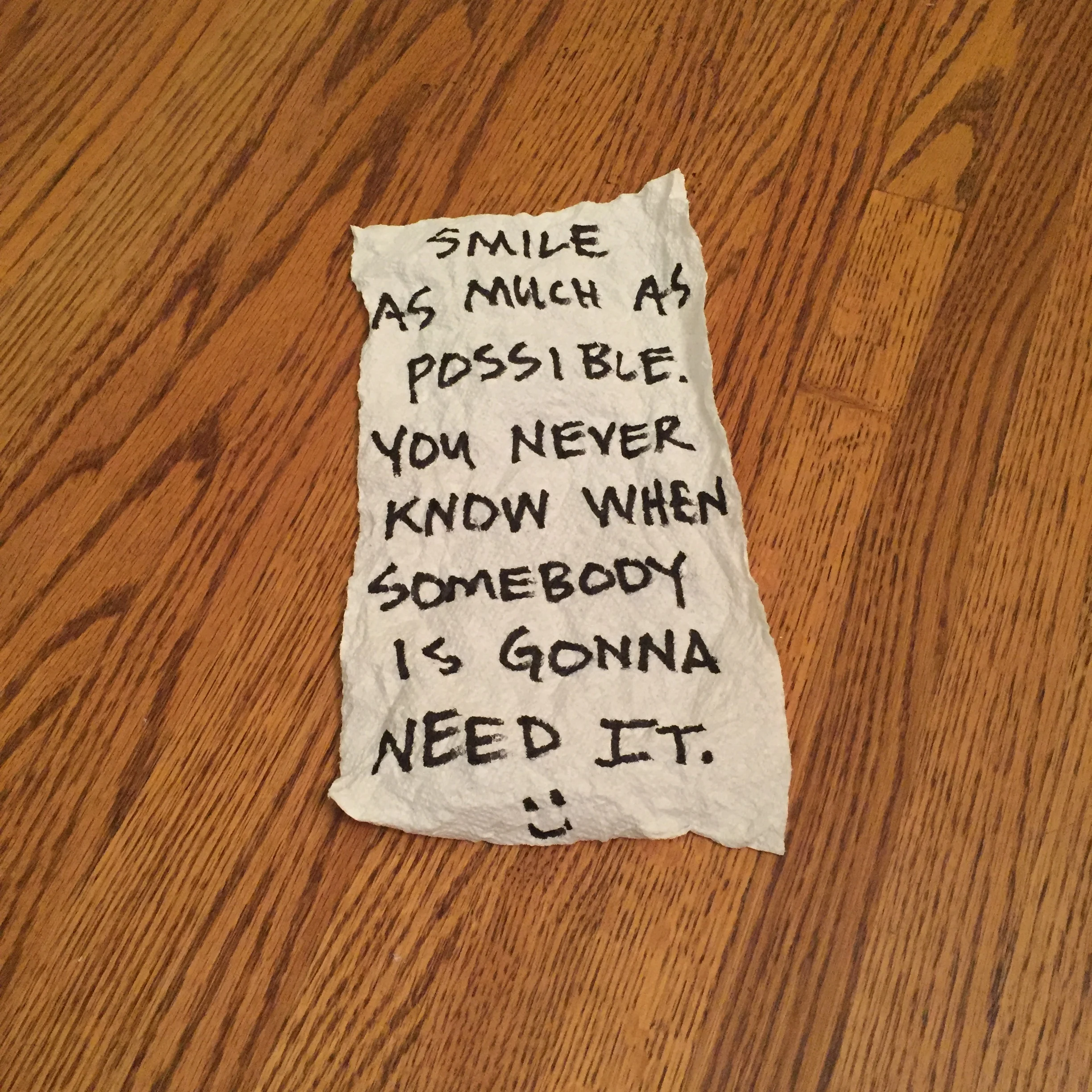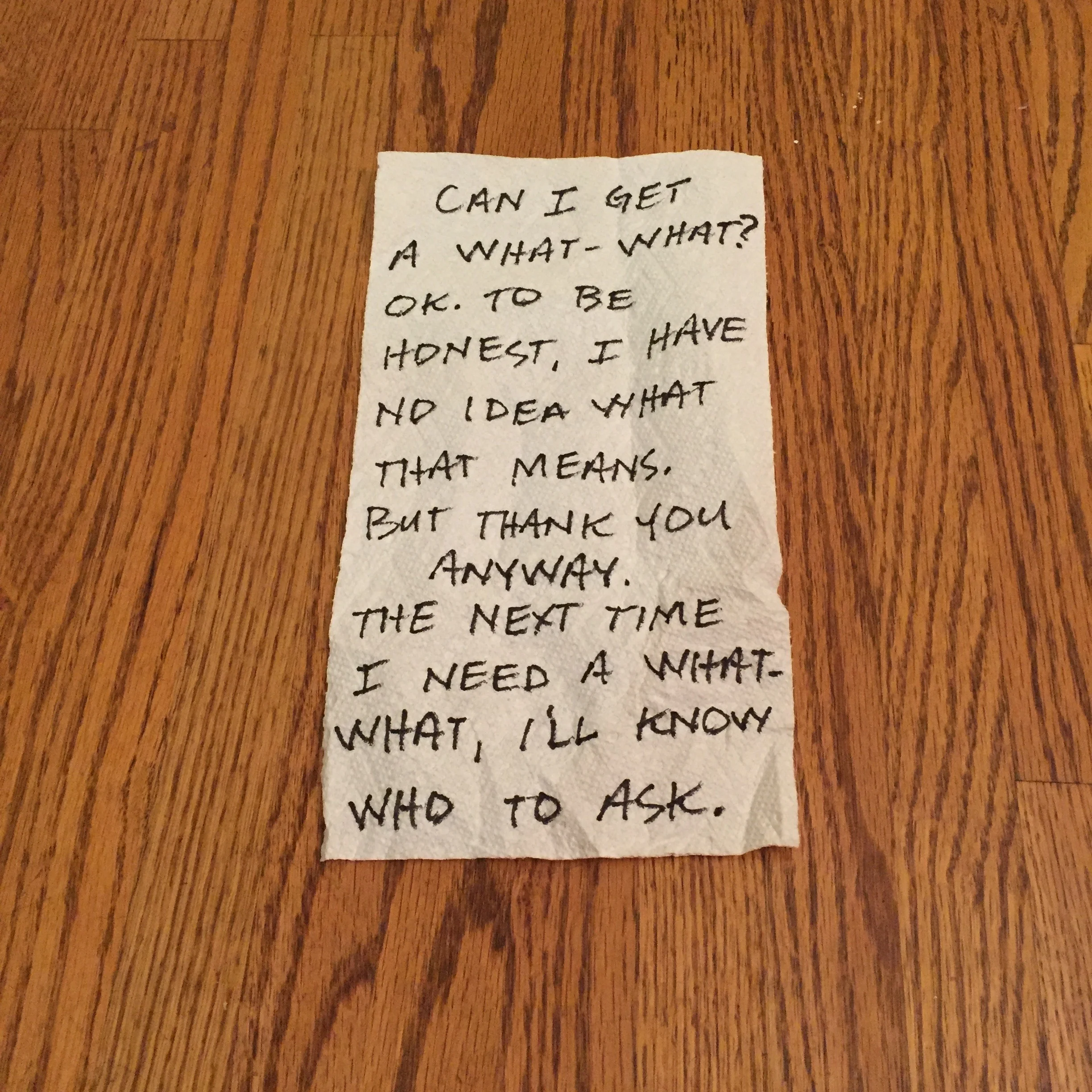 When you submit a Napkinism message, I will write the note on a napkin, post an image, share the image, and then save your note to share with a kid in need.