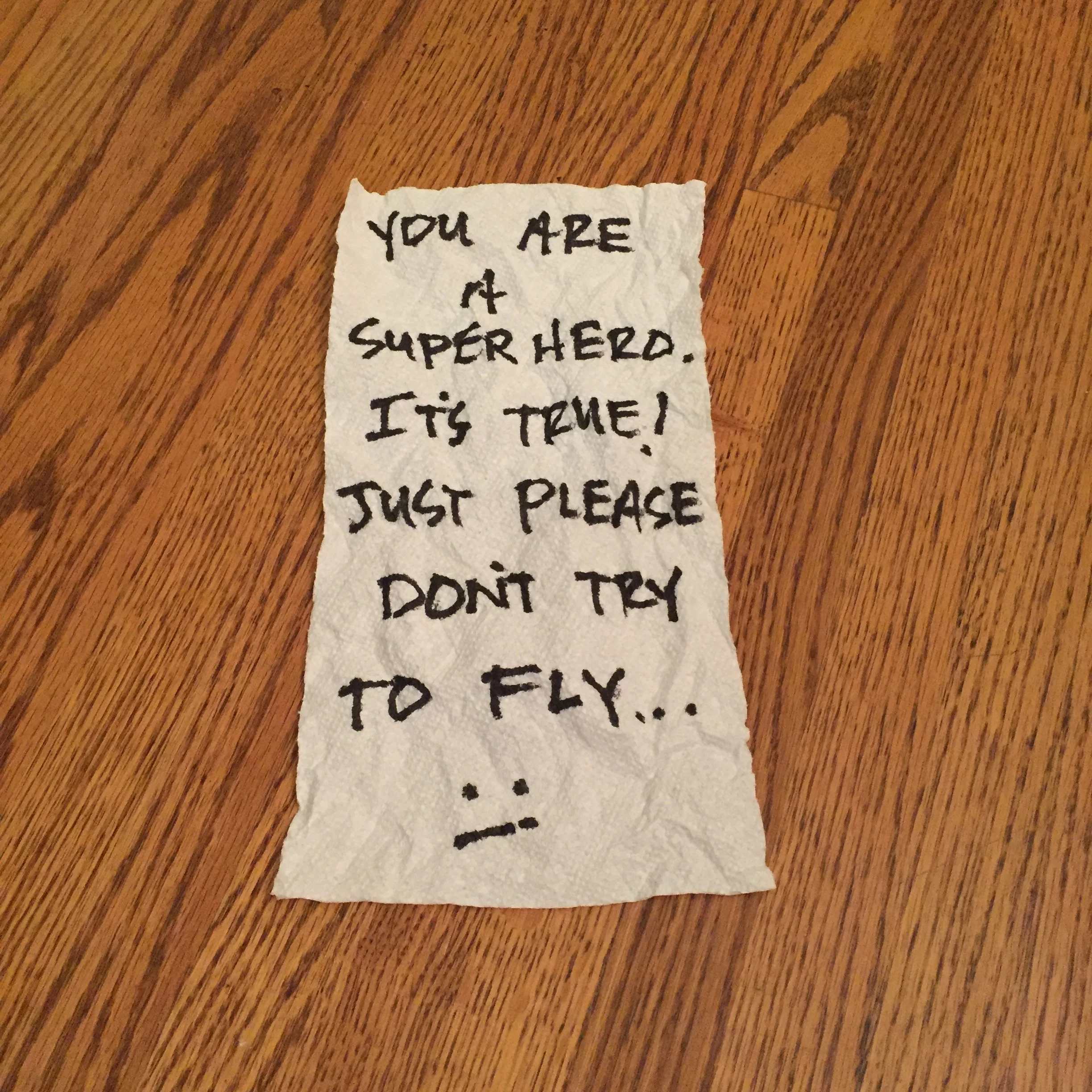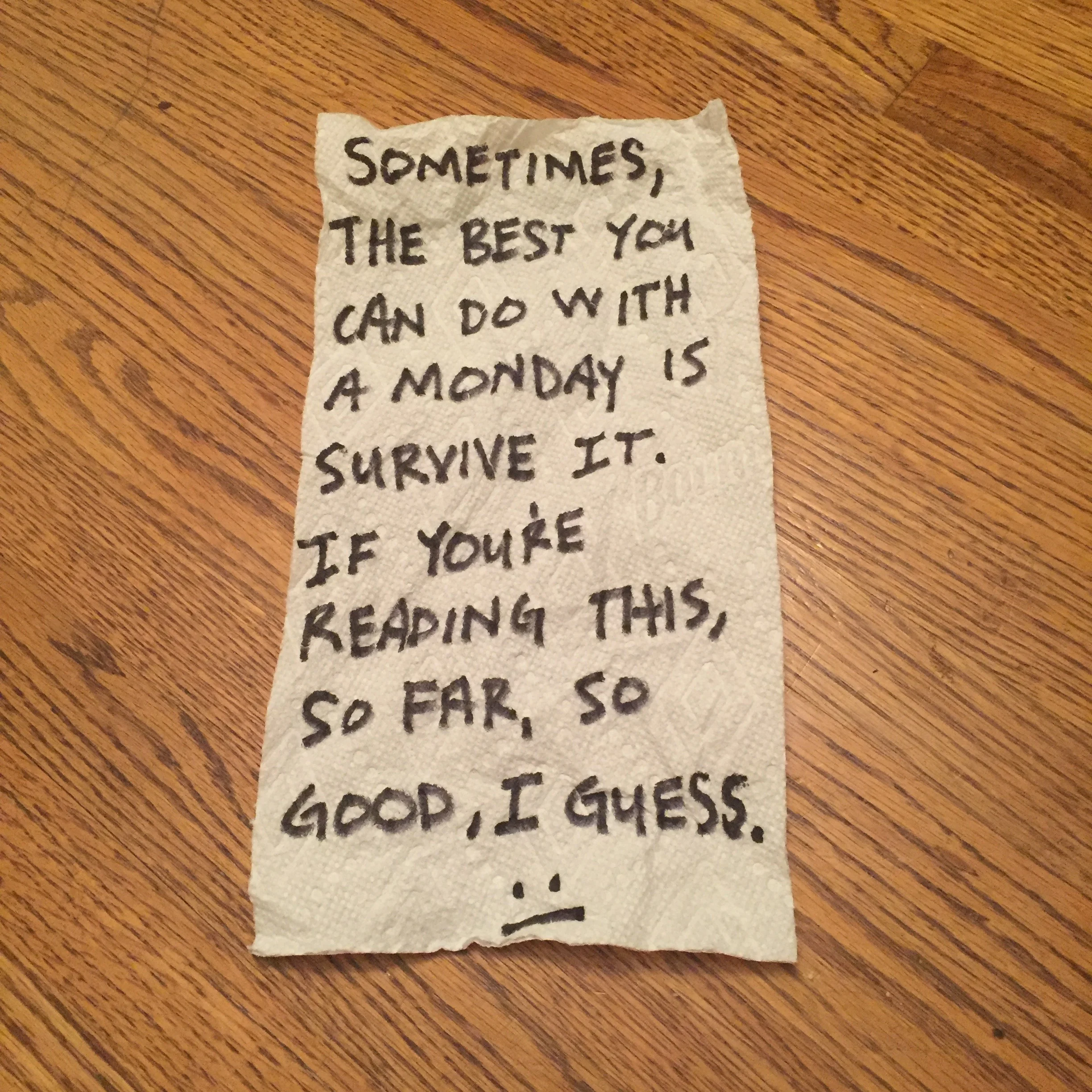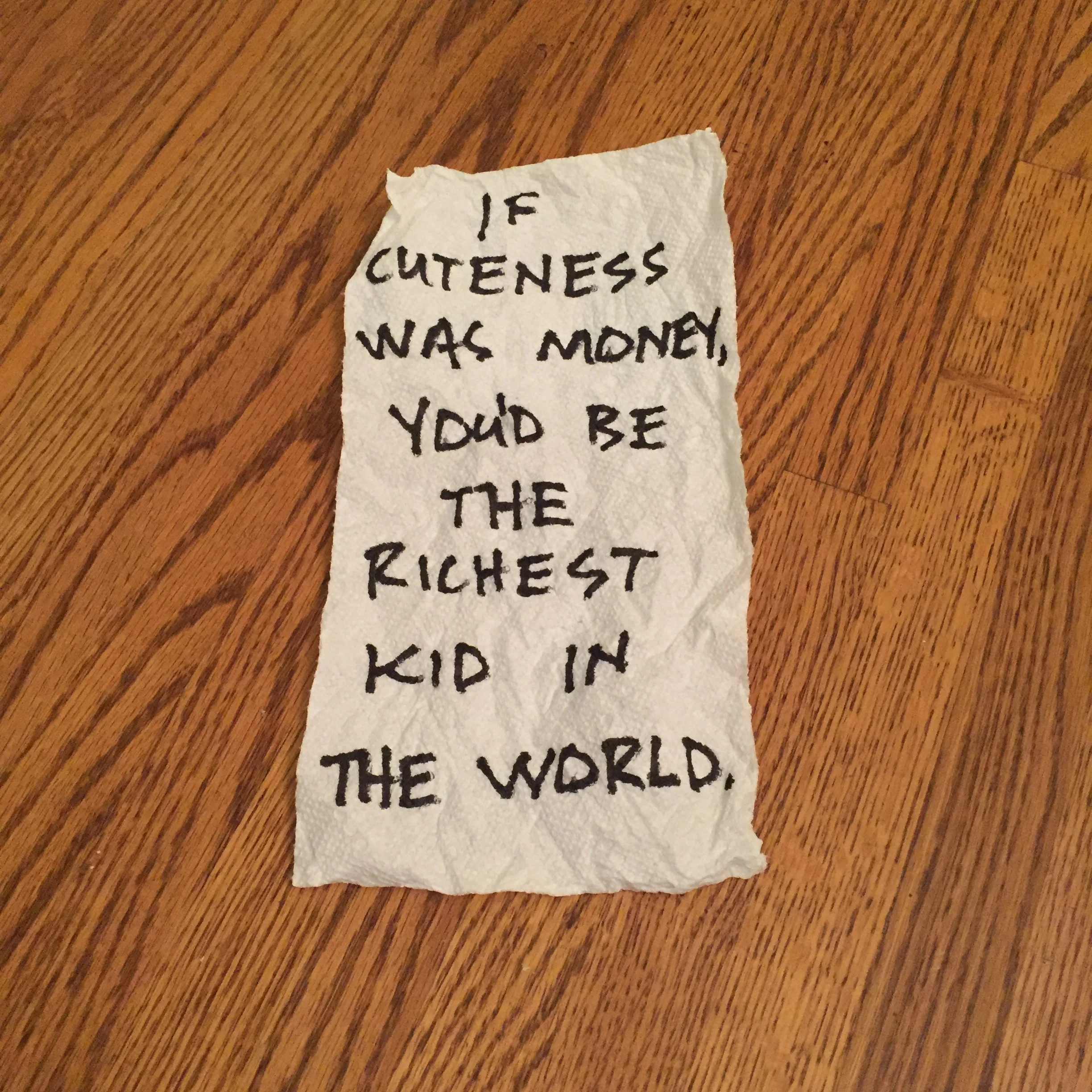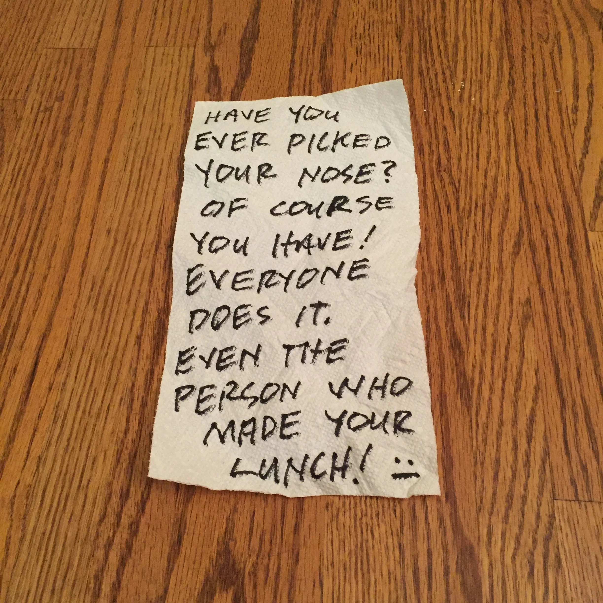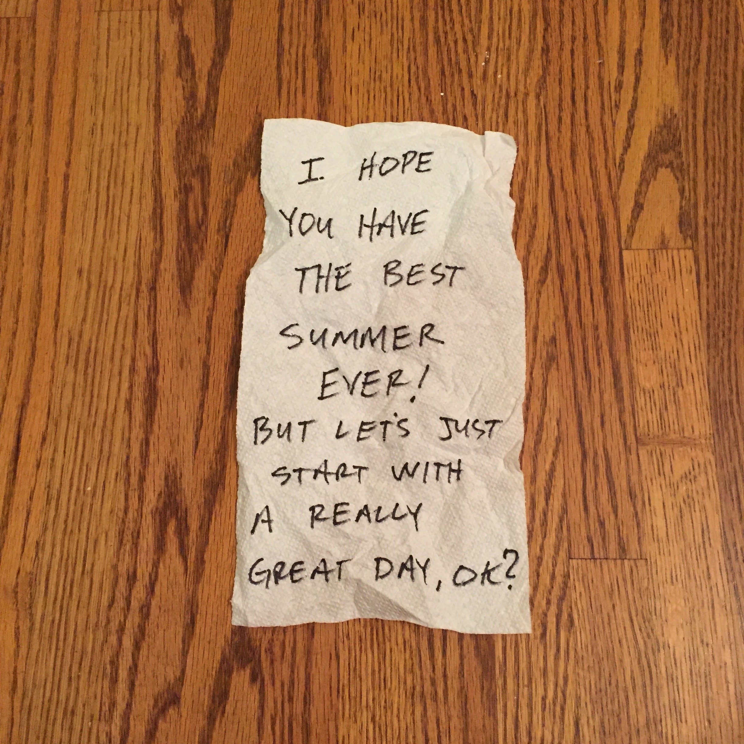 When you submit a Napkinism message, I will write the note on a napkin, post an image, share the image, and then save your note to share with a kid in need.