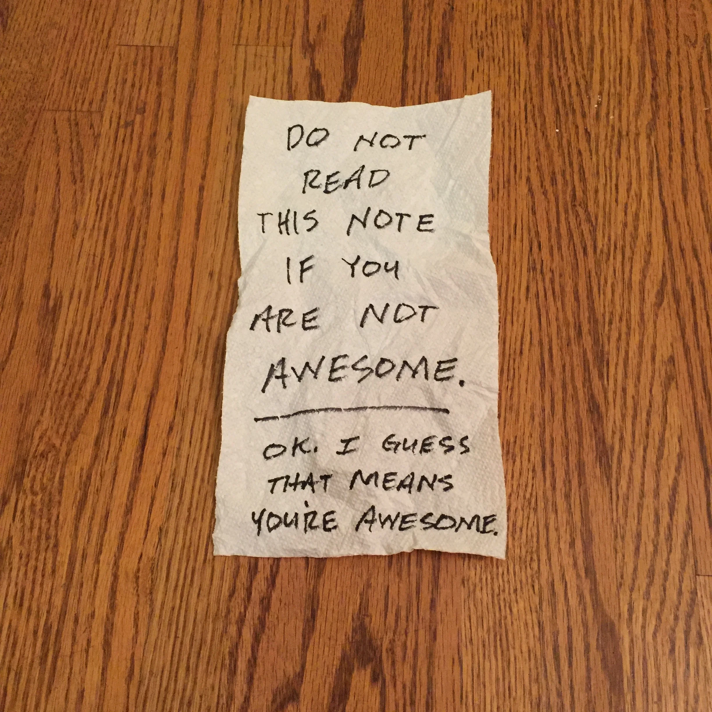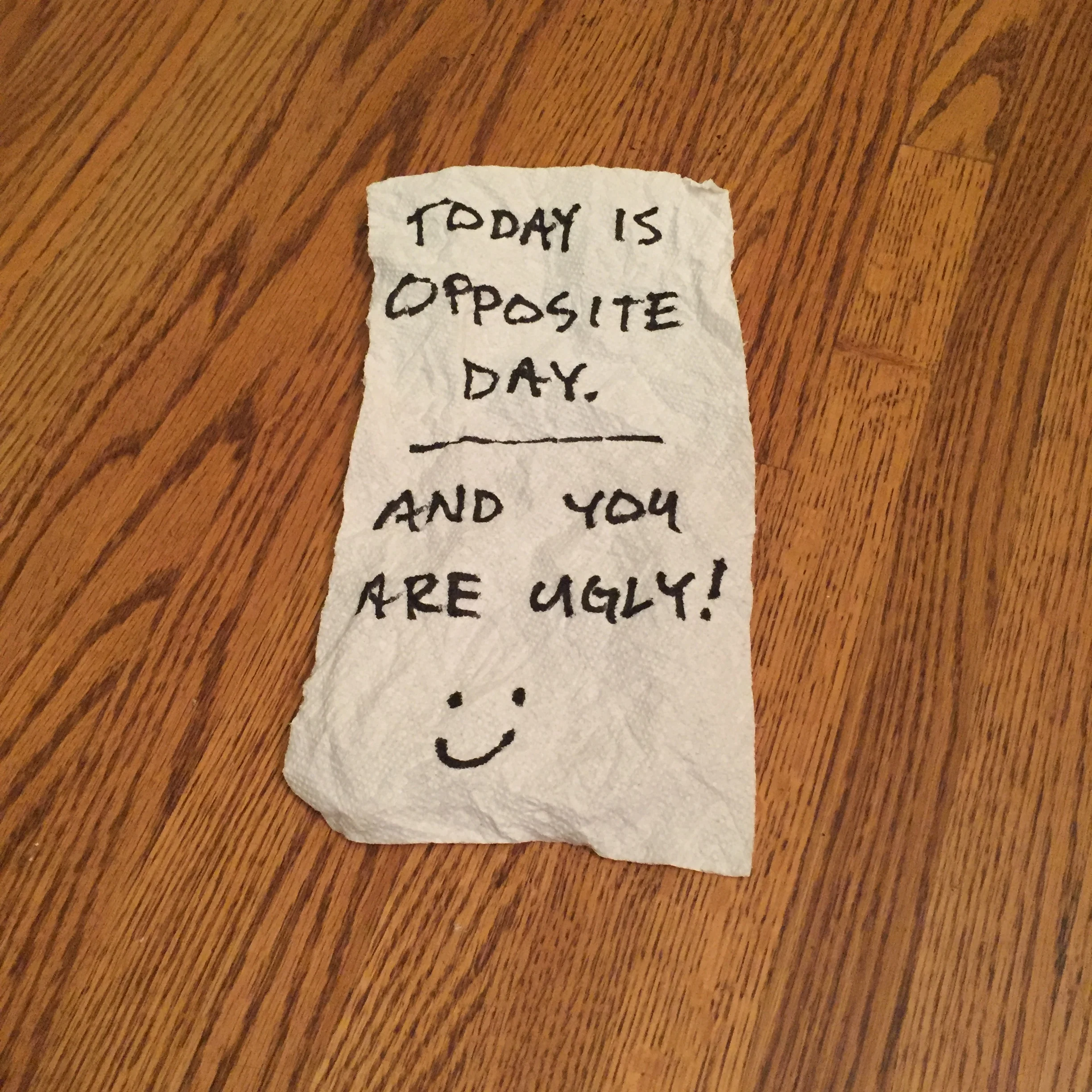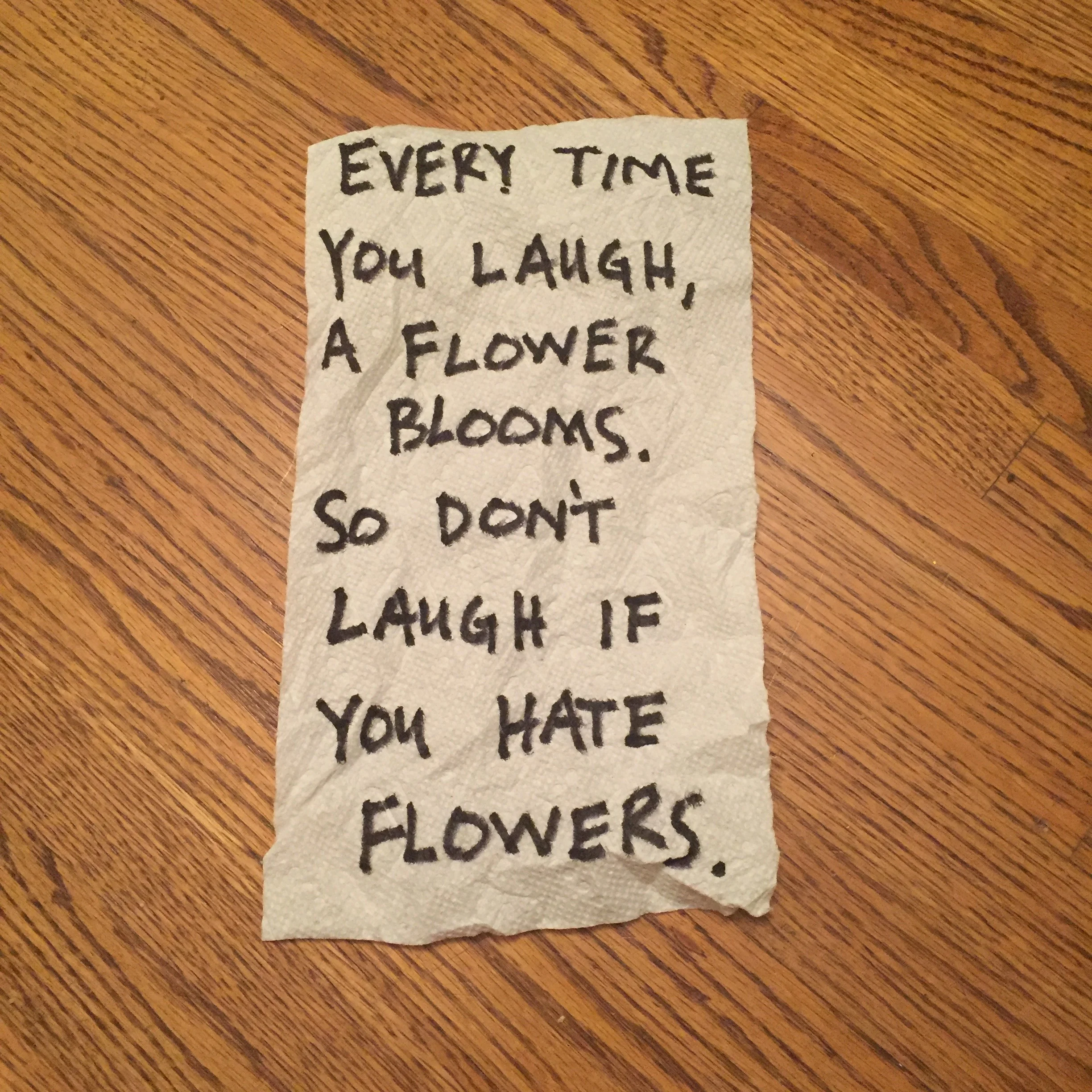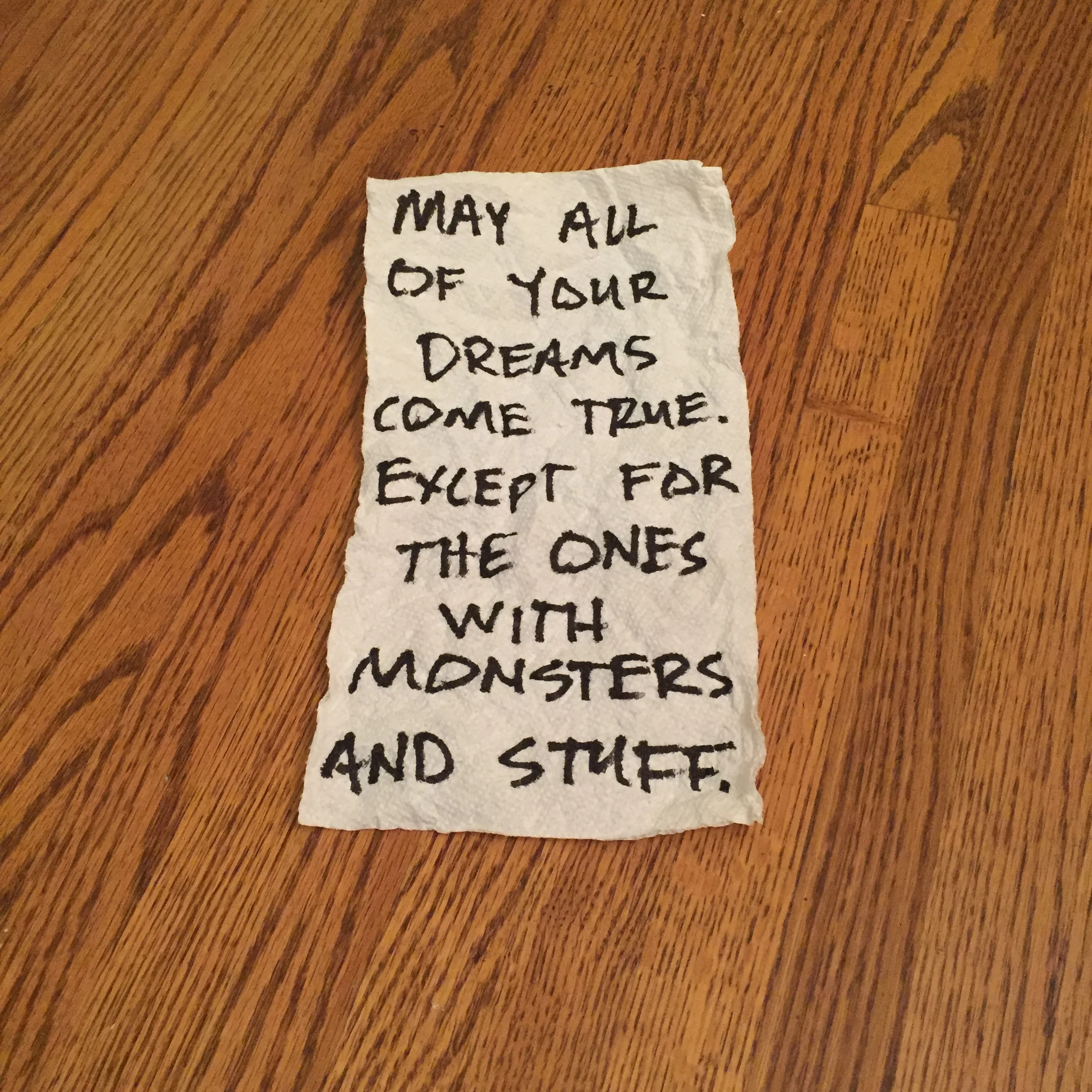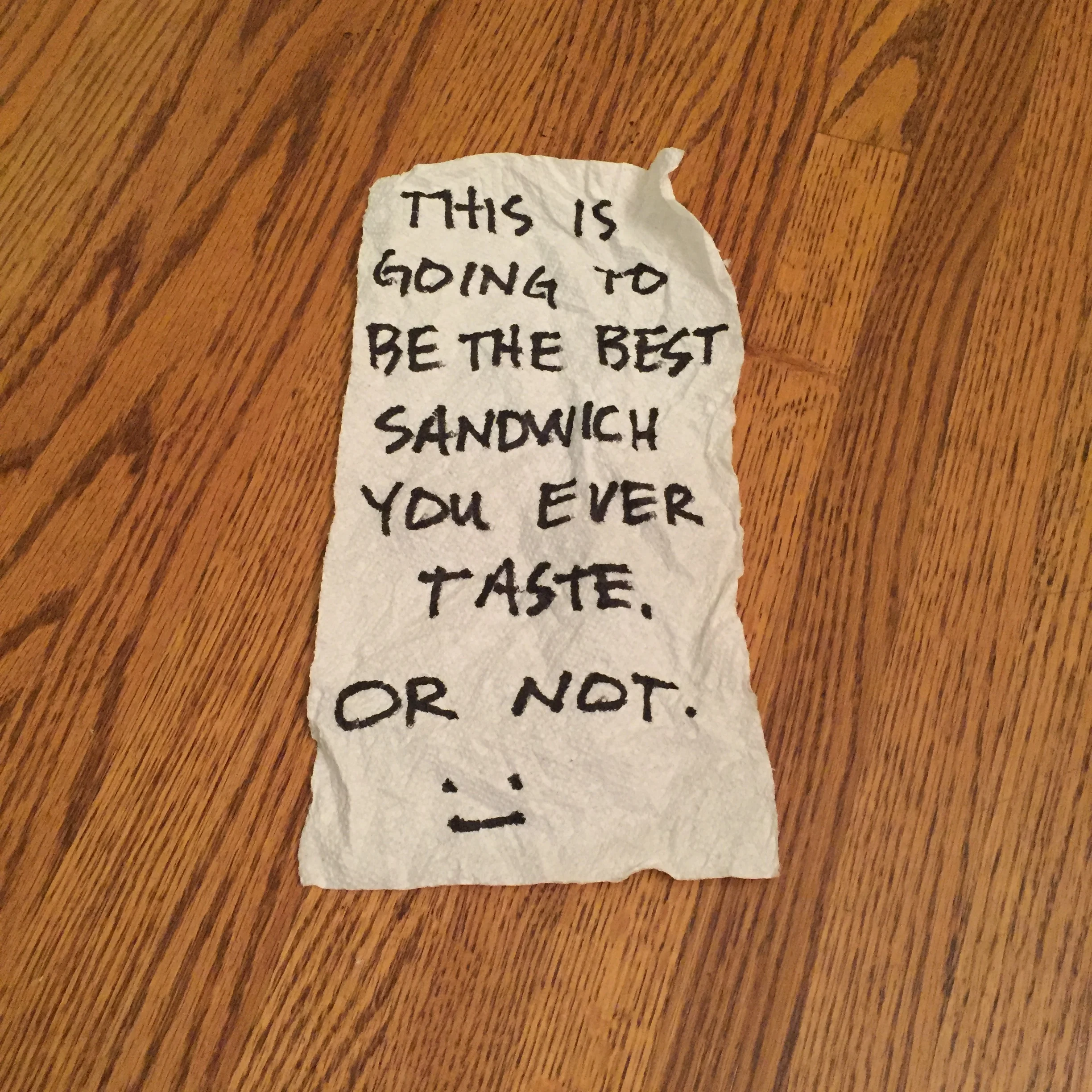 When you submit a Napkinism message, I will write the note on a napkin, post an image, share the image, and then save your note to share with a kid in need.