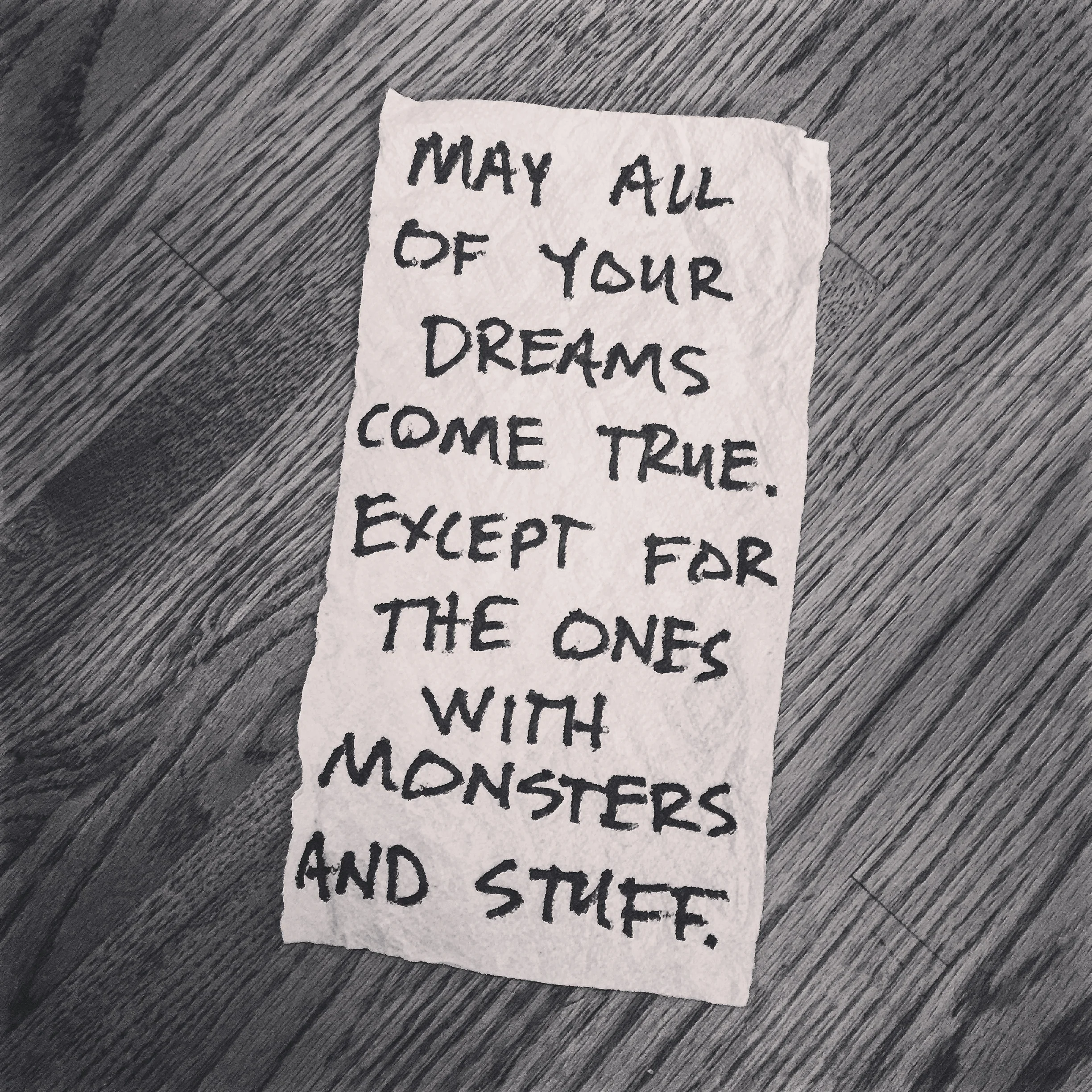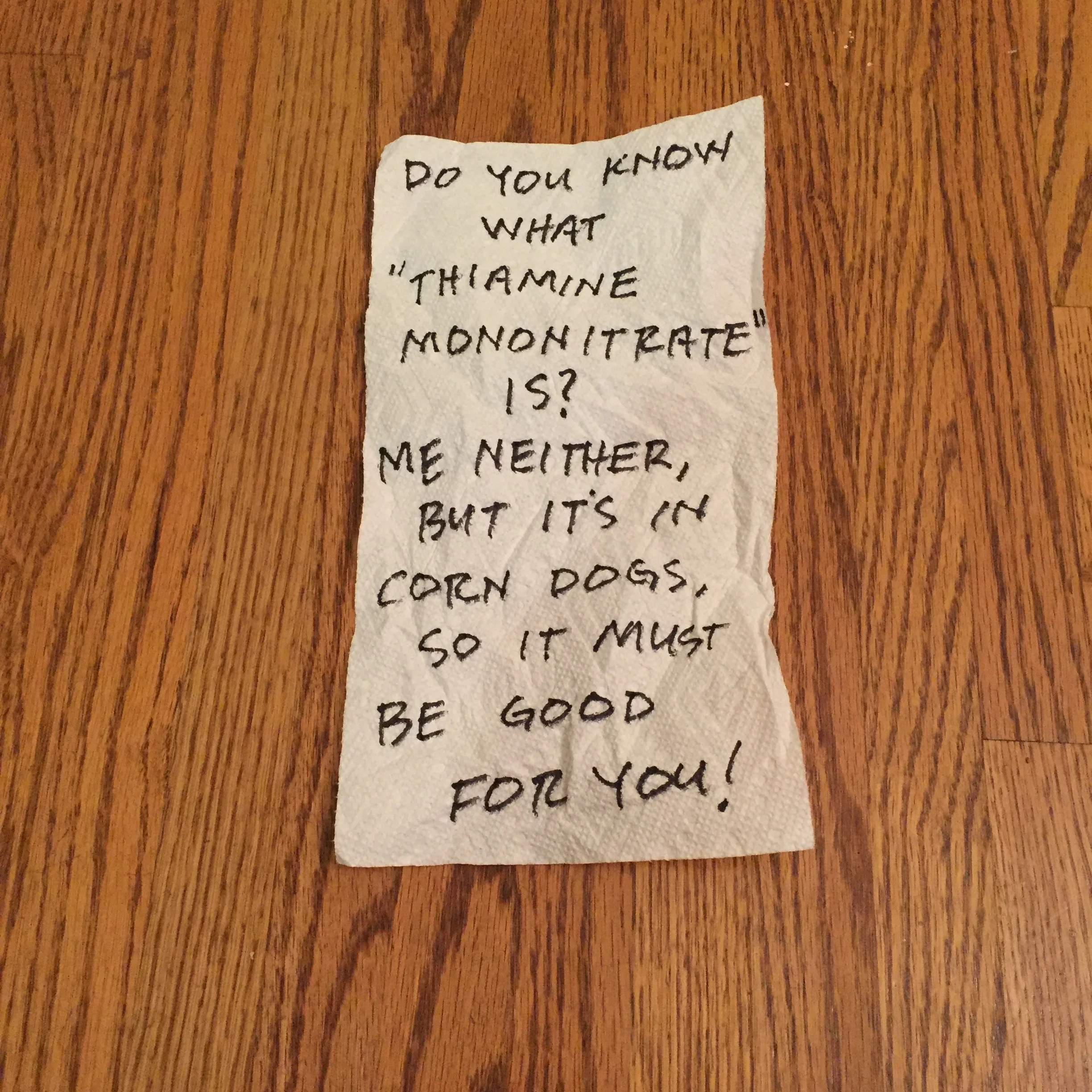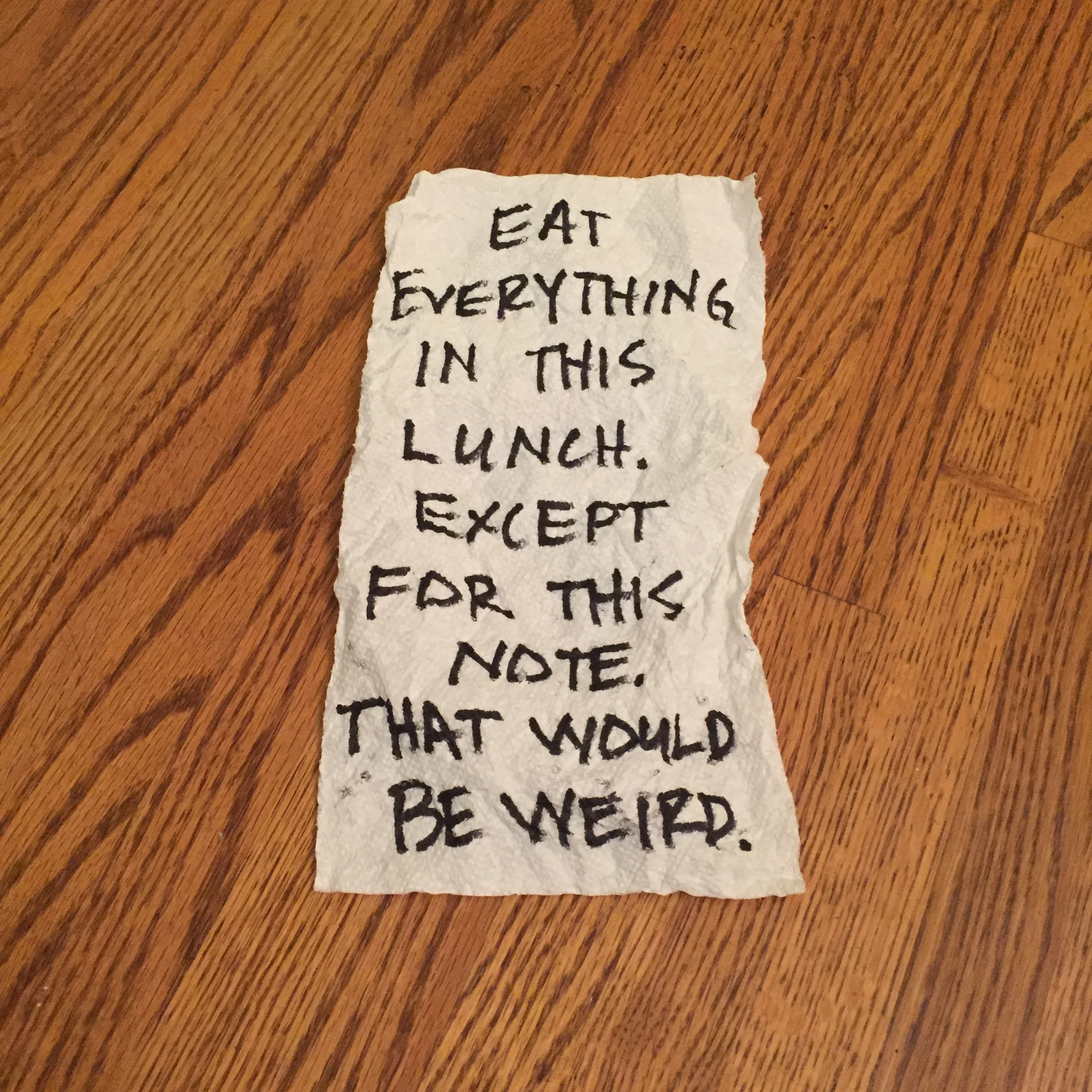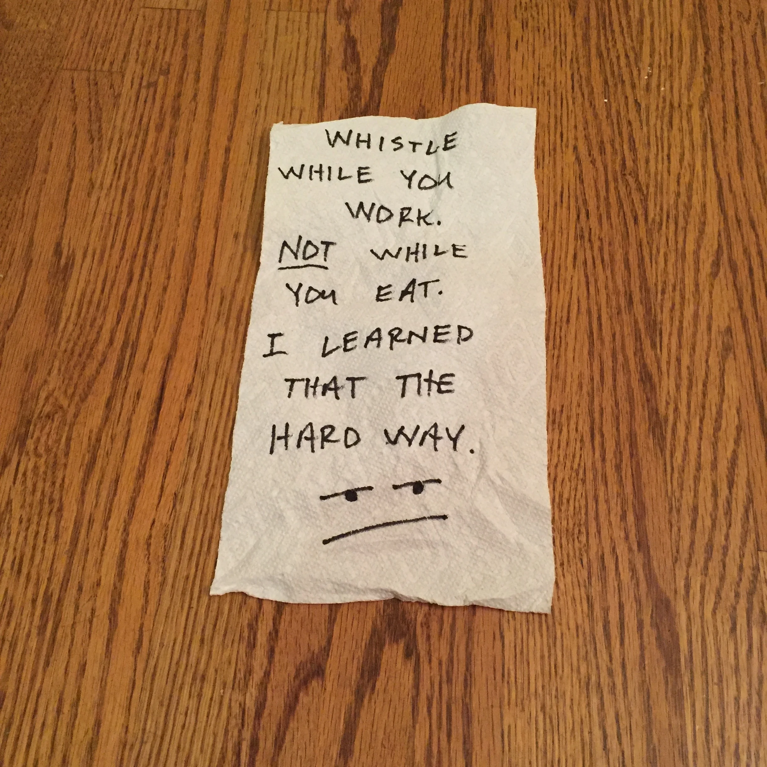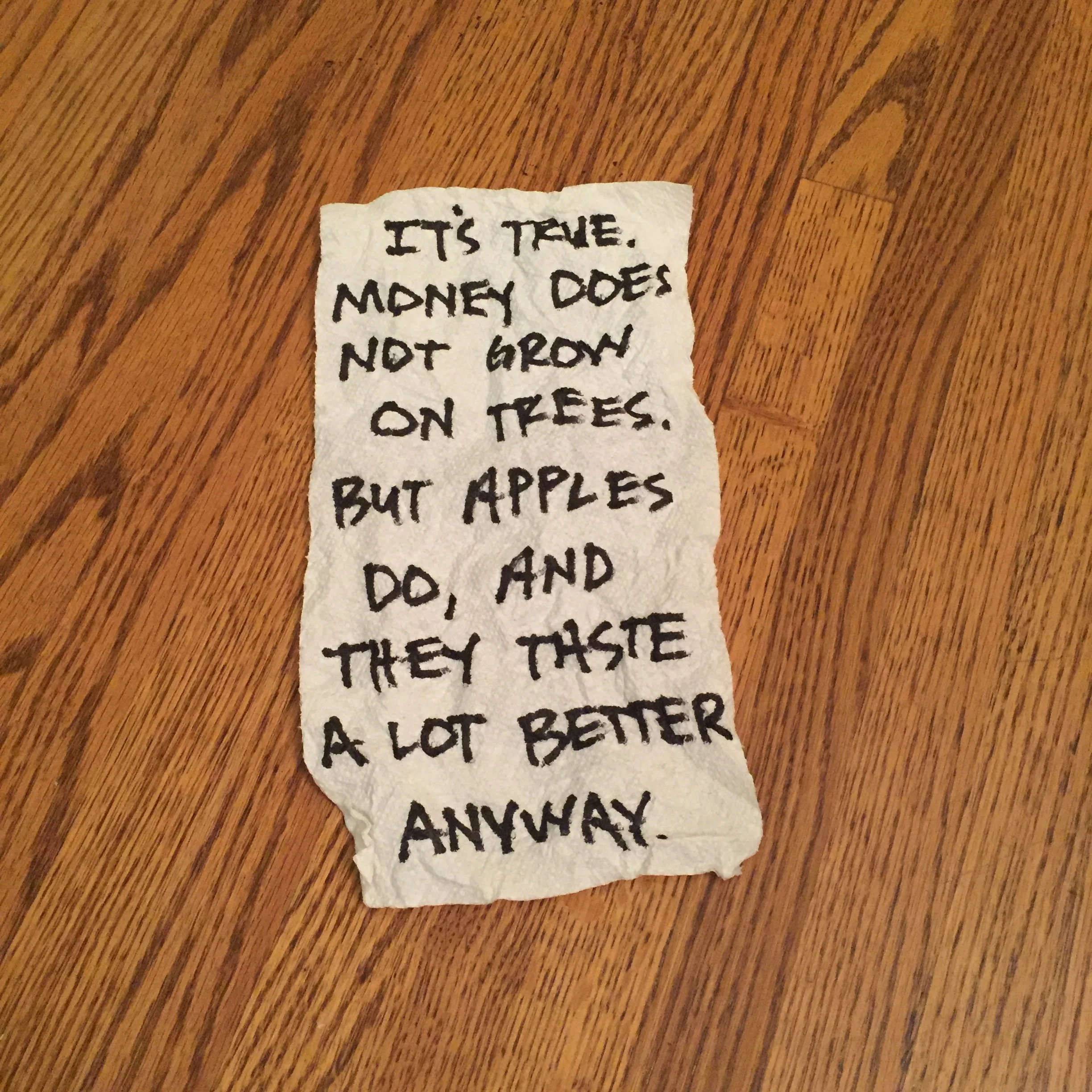 When you submit a Napkinism message, I will write the note on a napkin, post an image, share the image, and then save your note to share with a kid in need.